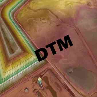 DTMs are typically created through stereo photogrammetry .A DTM is a vector data set composed of regularly spaced points and natural features such as ridges and breaklines. A DTM augments a DEM by including linear features of the bare-earth terrain.